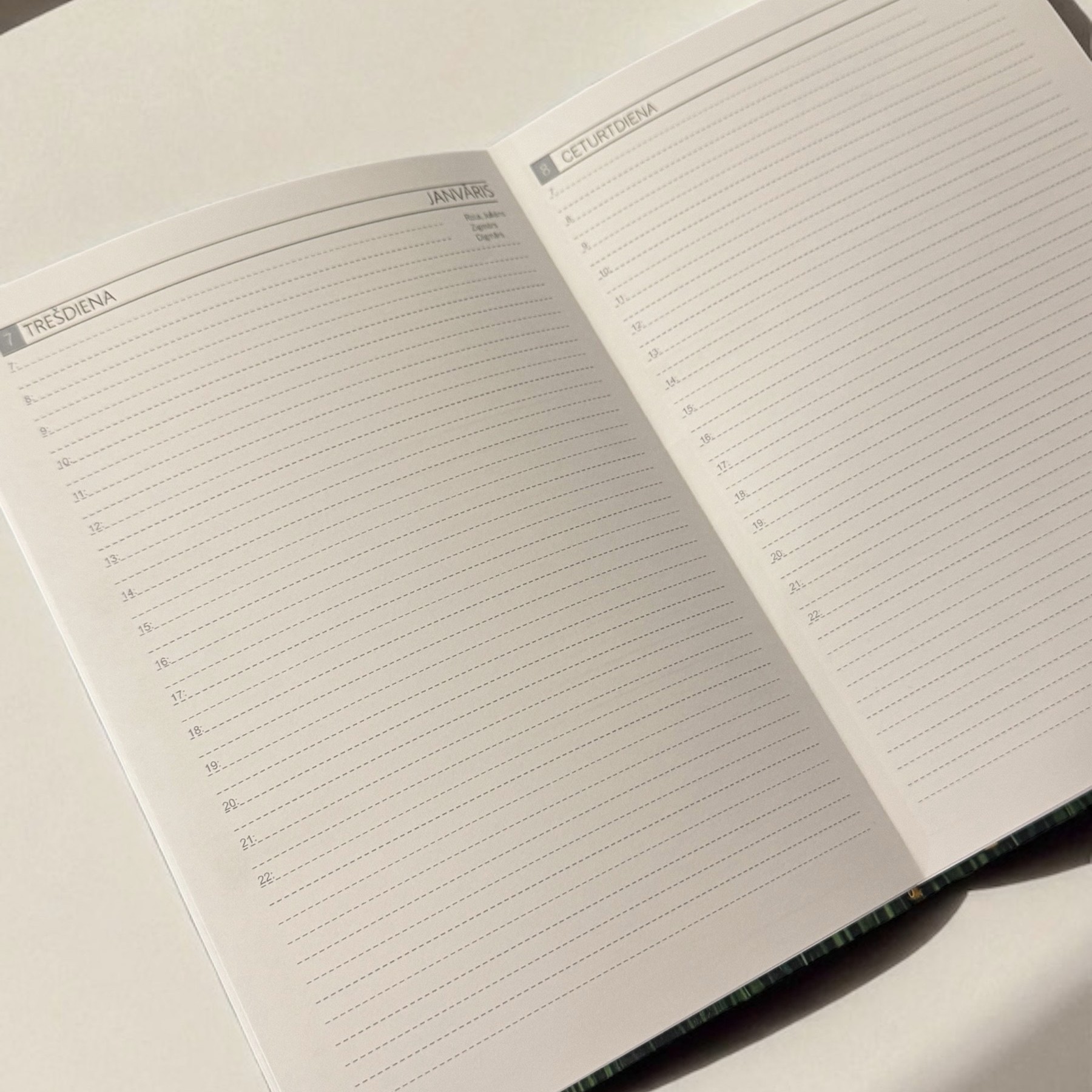 Katru mēnesi rotā Elis.Artworks glezna. Mēneša sākumā Tevi sagaida gaišs vēlējums, bet katrā nedēļā – plaša vieta saviem plāniem, domām un pierakstiem.