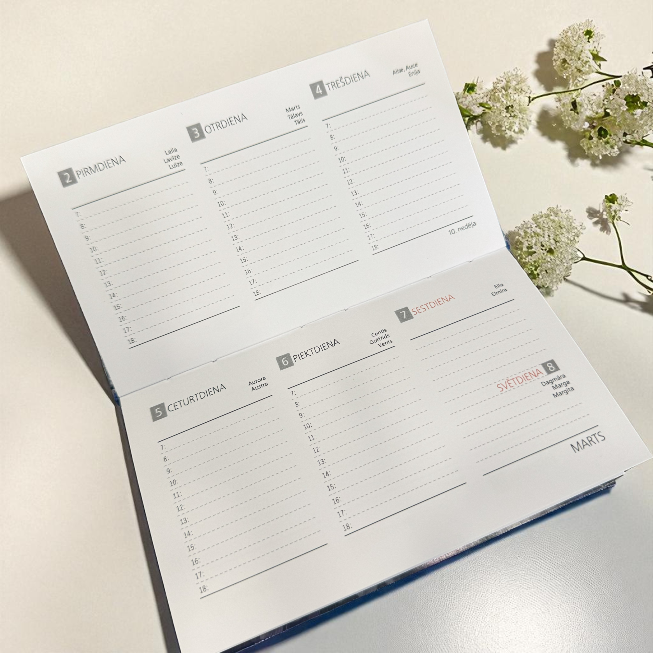 | Iekšējais plānojums | Vertikālais nedēļas dienu dalījums – atvērumā visa nedēļa |